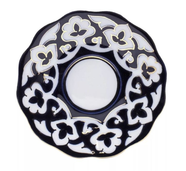 Блюдце Пахта синее с золотом 12,5 см